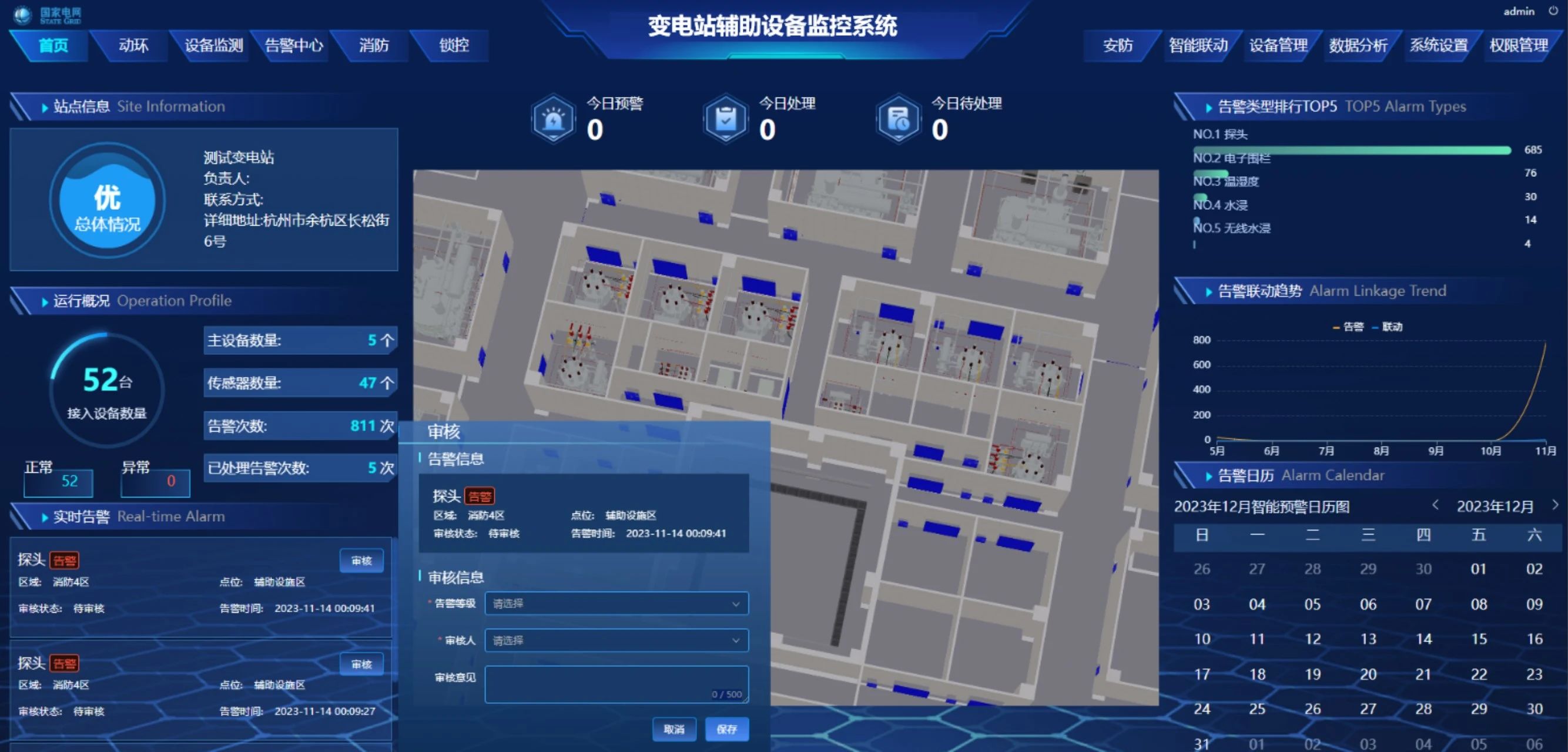 系統(tǒng)將變電站的各項(xiàng)運(yùn)營(yíng)信息匯聚成一張智能圖譜,包括任務(wù)統(tǒng)計(jì)、狀態(tài)統(tǒng)計(jì)、巡檢統(tǒng)計(jì)和告警列表等信息,構(gòu)筑一個(gè)智慧綜合駕駛艙。