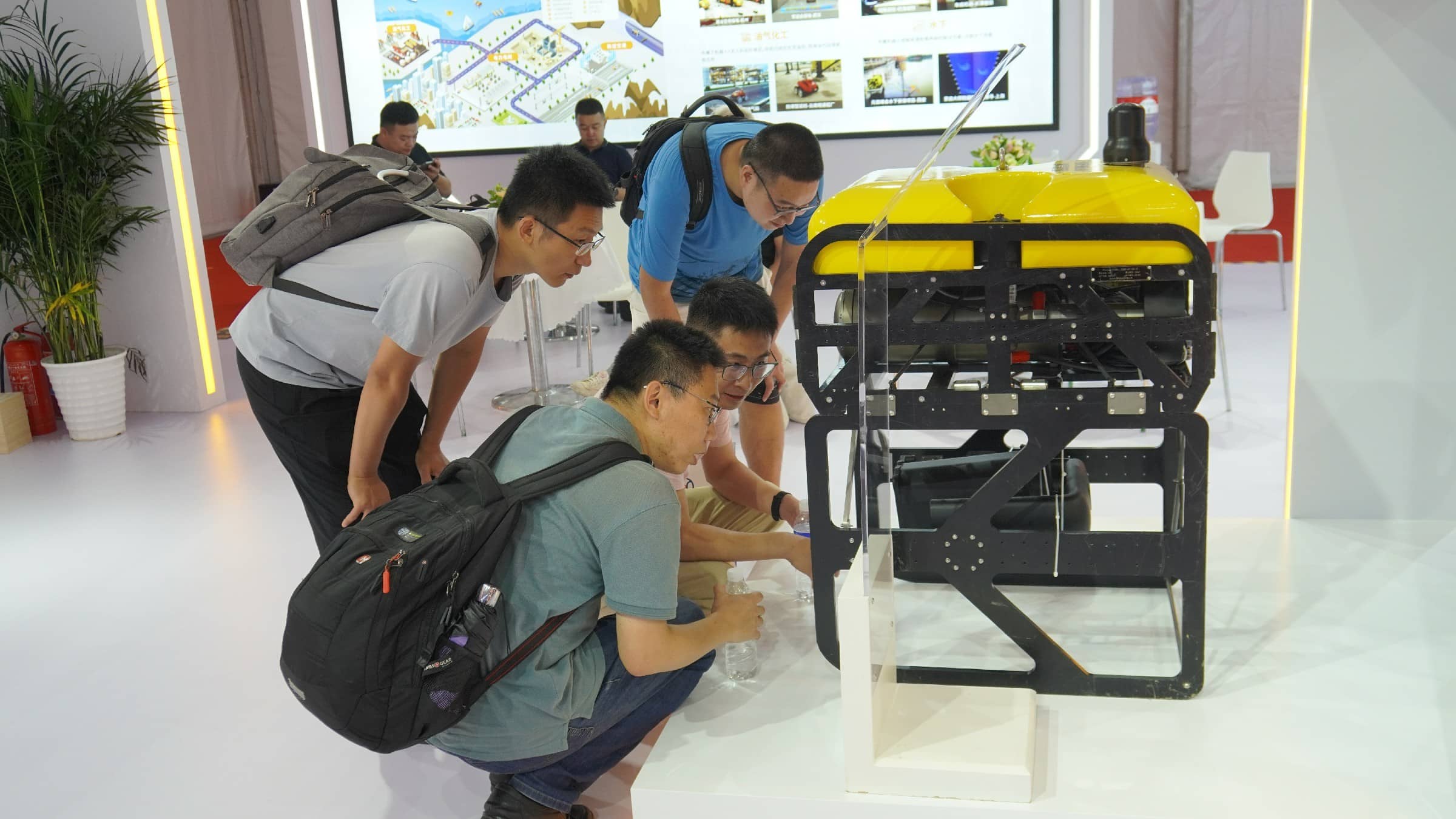 申昊科技展示的申龍一號水下機(jī)器人是展臺亮點之一。公司以“海陸空隧”戰(zhàn)略目標(biāo),向海底世界進(jìn)軍。該機(jī)器人負(fù)載能力強(qiáng),適合搭載水下作業(yè)機(jī)械手進(jìn)行救助打撈工作。其強(qiáng)大的運動能力可以在作業(yè)水域快速運輸緊急消防物資;其在線圖像增強(qiáng)和實時目標(biāo)識別攝像系統(tǒng),可以更加清晰的獲取水下影像,方便進(jìn)行監(jiān)測和圈定有效目標(biāo)物。吸引了眾多觀眾興趣和咨詢。
