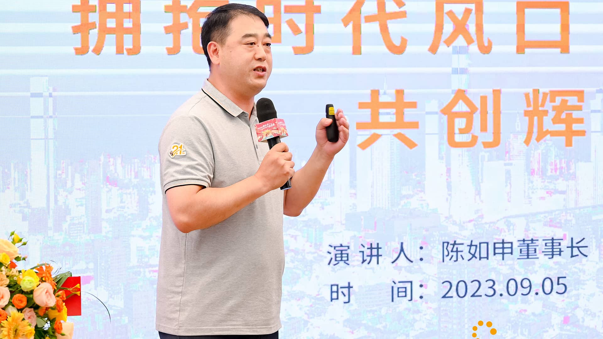 在慶典儀式上,陳如申董事長發(fā)表了以“擁抱時代風(fēng)口,共創(chuàng)輝煌未來”為主題的重要致辭。