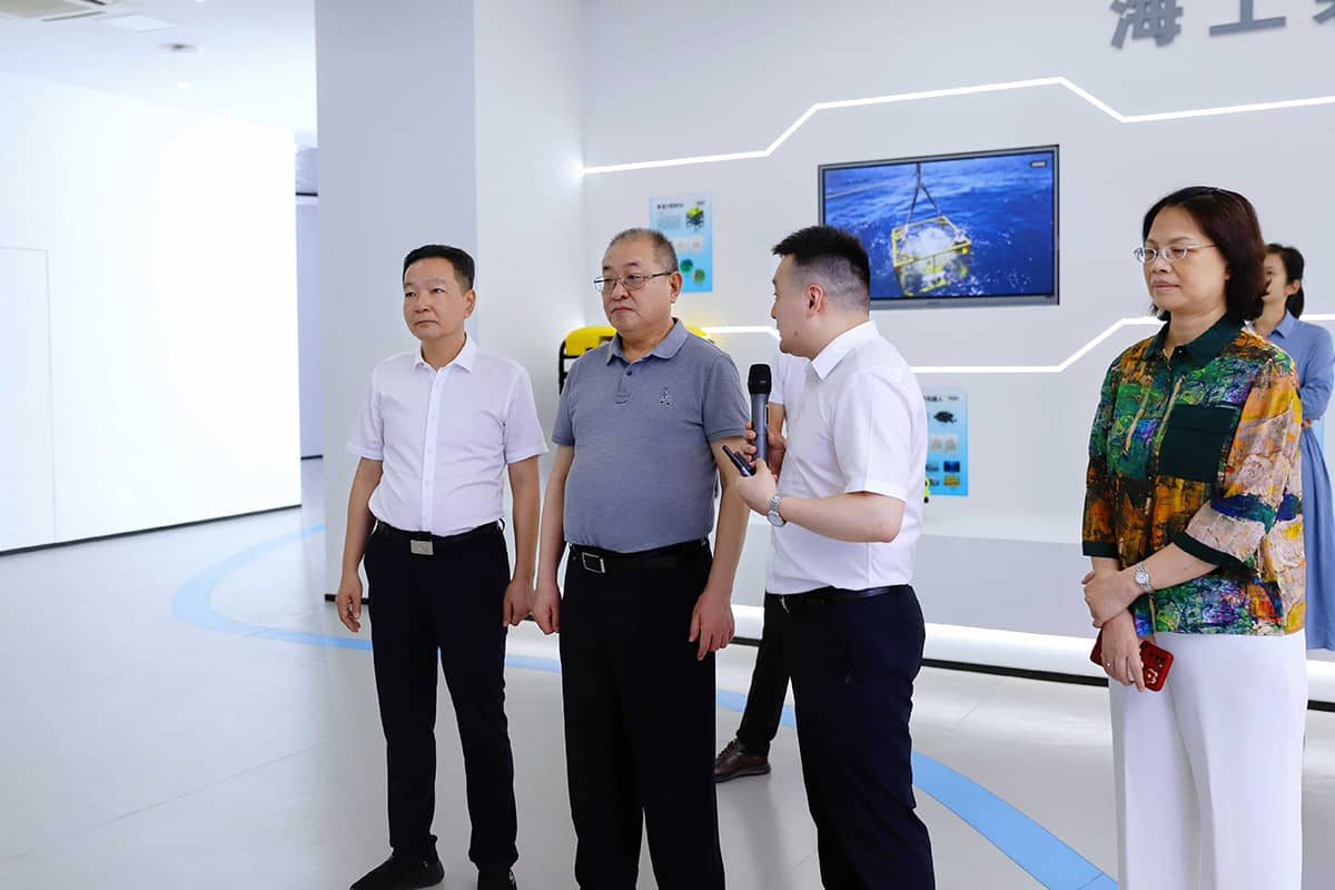 在調(diào)研過(guò)程中,吳海騰向各位領(lǐng)導(dǎo)闡述了實(shí)驗(yàn)室的發(fā)展情況,并展示了實(shí)驗(yàn)室各項(xiàng)成果,包括“申龍?zhí)枴彼聶C(jī)器人、三維聲吶、水下安防平臺(tái)等,并詳細(xì)匯報(bào)了人工智能產(chǎn)品在海洋測(cè)繪、海底資產(chǎn)數(shù)據(jù)發(fā)掘、低空經(jīng)濟(jì)發(fā)展等領(lǐng)域的創(chuàng)新技術(shù)和應(yīng)用。